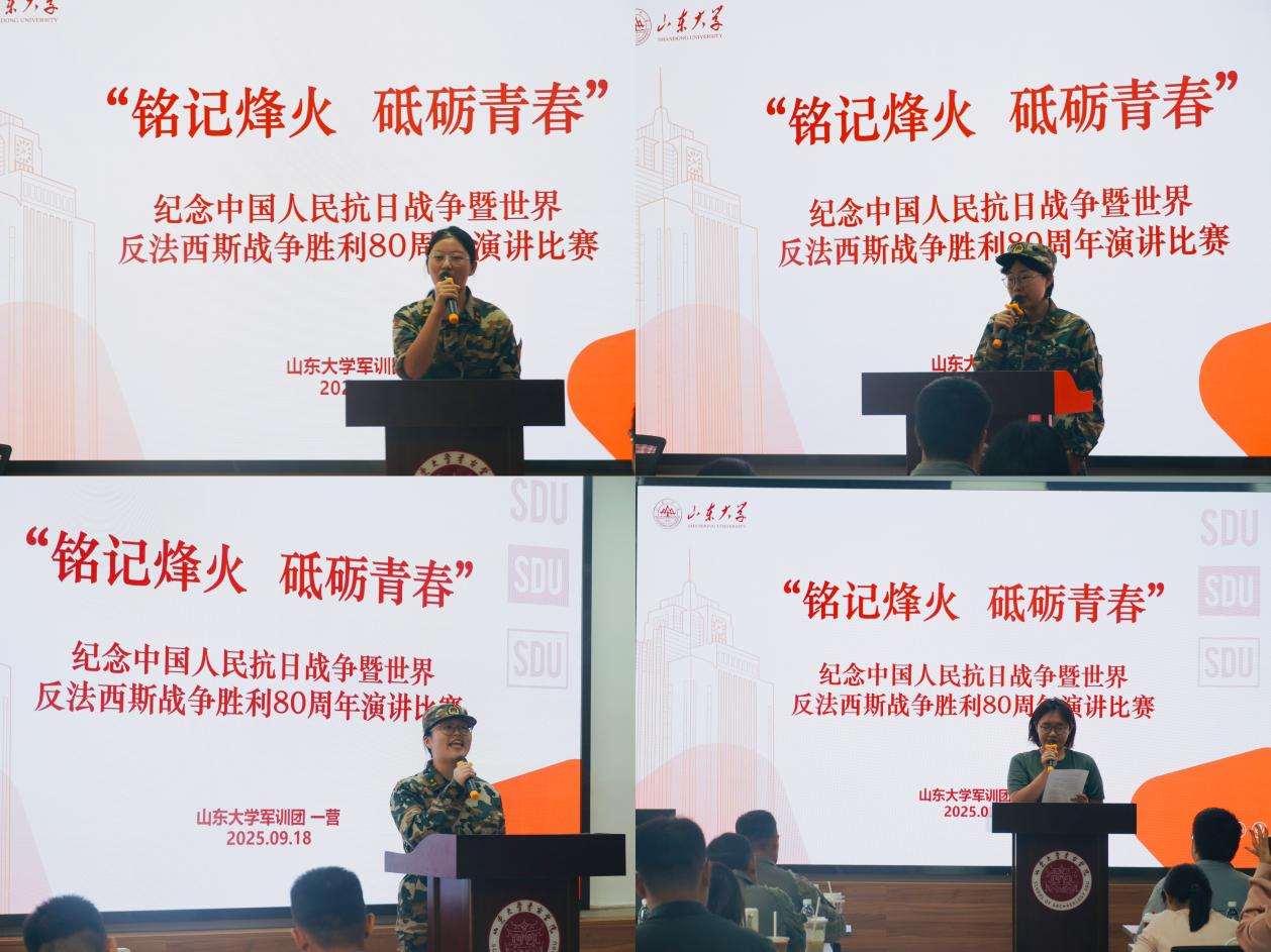 2025年9月19日,“铭记烽火,砥砺青春”纪念中国人民抗日战争暨世界反法西斯战争胜利80周年演讲比赛在文史楼三楼陶器标准化教室举行。此次活动由山东大学星空平台-星空(中国)主办,哲学与社会发展学院、经济学院、历史学院、考古学院、化学与化工学院共同协办,旨在引导2025级本科新生深刻把握抗战精神的时代意义,传承红色基因,厚植家国情怀。此次演讲比赛的评委团由一营各连教官与政工干部组成,部分学生代表参赛。